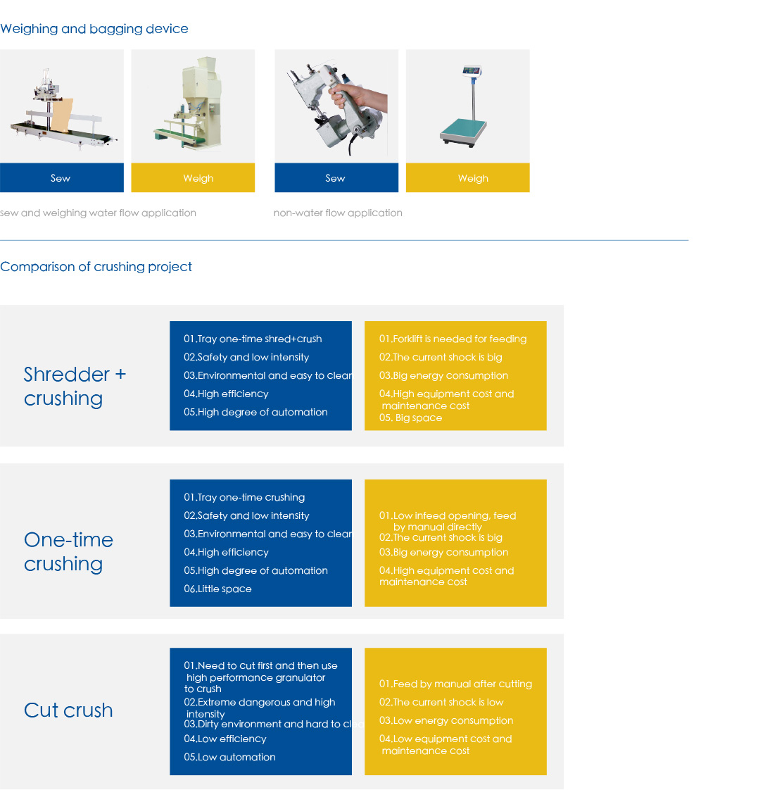Production line of tray crushing weighing and bagging
